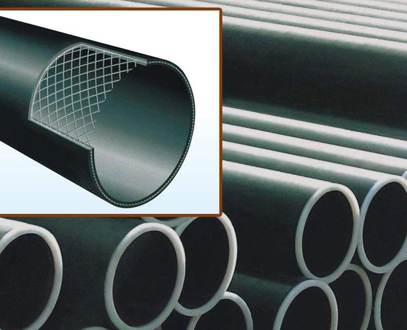 The structural feature of steel wire mesh reinforced polyethylene (PE) composite pipes is the presence of two or more layers of wound steel wire mesh reinforcement between the inner and outer pipe walls.